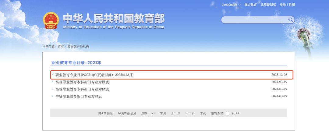 《职业教育专业目录(2021年)》