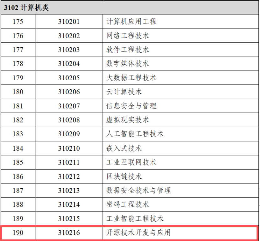 近日,教育部官网更新了《职业教育专业目录(2021年)(更新时间:2025年12月)》,其中正式设立“开源技术应用”(高等职业教育专科专业 510220)和“开源技术开发与应用”(高等职业教育本科专业 310216)专业,标志着开源教育正式纳入国家人才培养体系。