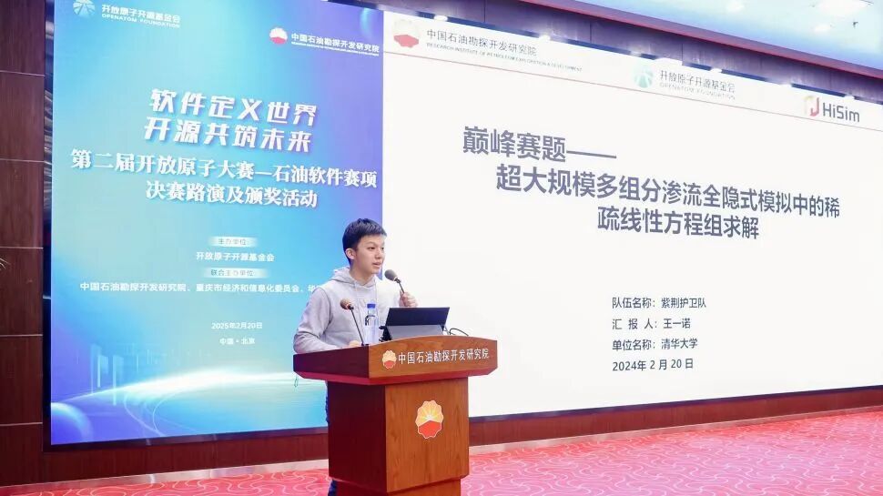 石油软件赛项由中国石油勘探开发研究院与开放原子开源基金会联合命题,聚焦油气勘探核心技术环节——不仅面临大规模计算挑战,更直指国产工业软件体系自主创新的核心命题。其中,巅峰挑战赛 “超大规模多组分渗流全隐式模拟中的稀疏线性方程组求解”,最终由清华大学 “紫荆护卫队” 摘得一等奖。