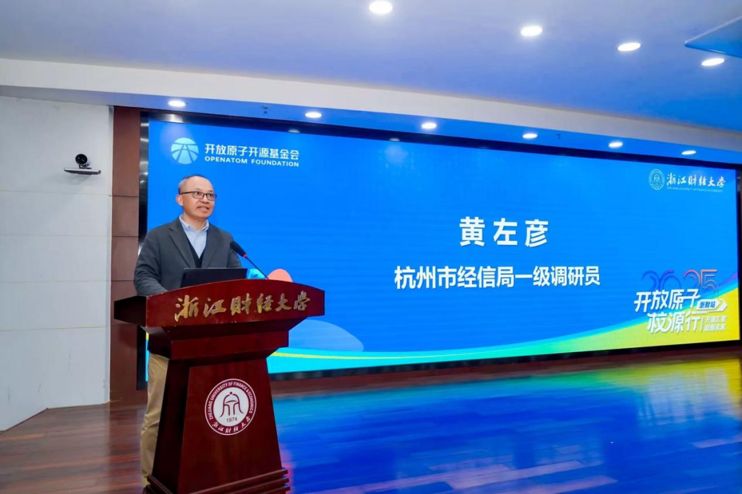 12月9日,由开放原子开源基金会、杭州市经济和信息化局主办,浙江财经大学、浙江财经大学人工智能研究院、浙江省电子信息产品检验研究院、浙江省工业软件产业技术联盟、浙江省信息技术应用创新联盟、杭州市基础软件和工业软件产业技术联盟联合承办的开放原子校源行(浙财站)成功举办。活动以 “开源汇智 财创未来” 为主题,汇聚政府代表、企业代表、开源领域专家及200余名师生,共探开源技术与财经学科深度融合的创新路径,见证开源生态在经管领域的蓬勃发展。
