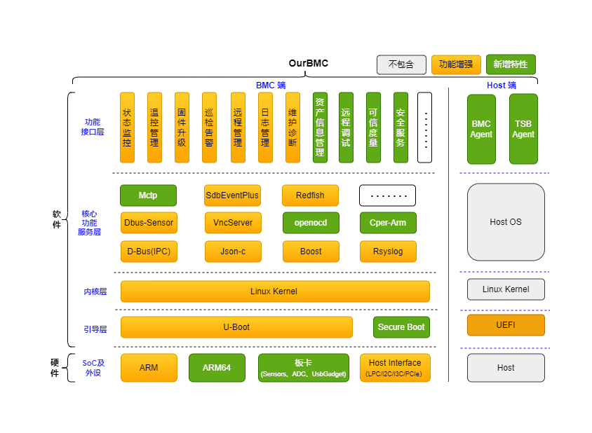 •提供从host端到BMC端的全栈BMC技术实现,并为开发者提供全面、高效的BMC全栈解决方案